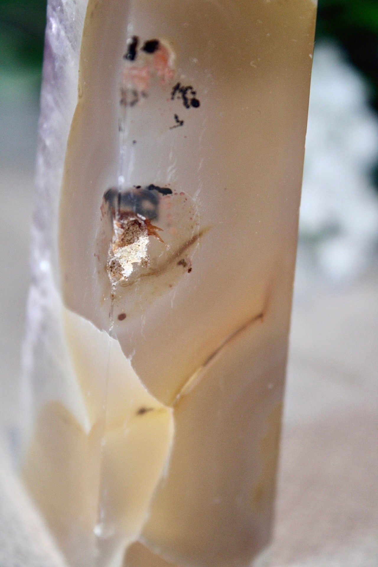 Agate aligns the body,mind and spirit. Agate is linked to bright ideas and positive thinking. This crystal symbolizes harmony and rebalance. Making you feel secure, centered and calm. It helps you to accept yourself, helping to have no regrets, self criticism and stops you living in the past. This stone helps you too speak your truth and embrace things as they are. This stone will help you to focus and improves concentration.