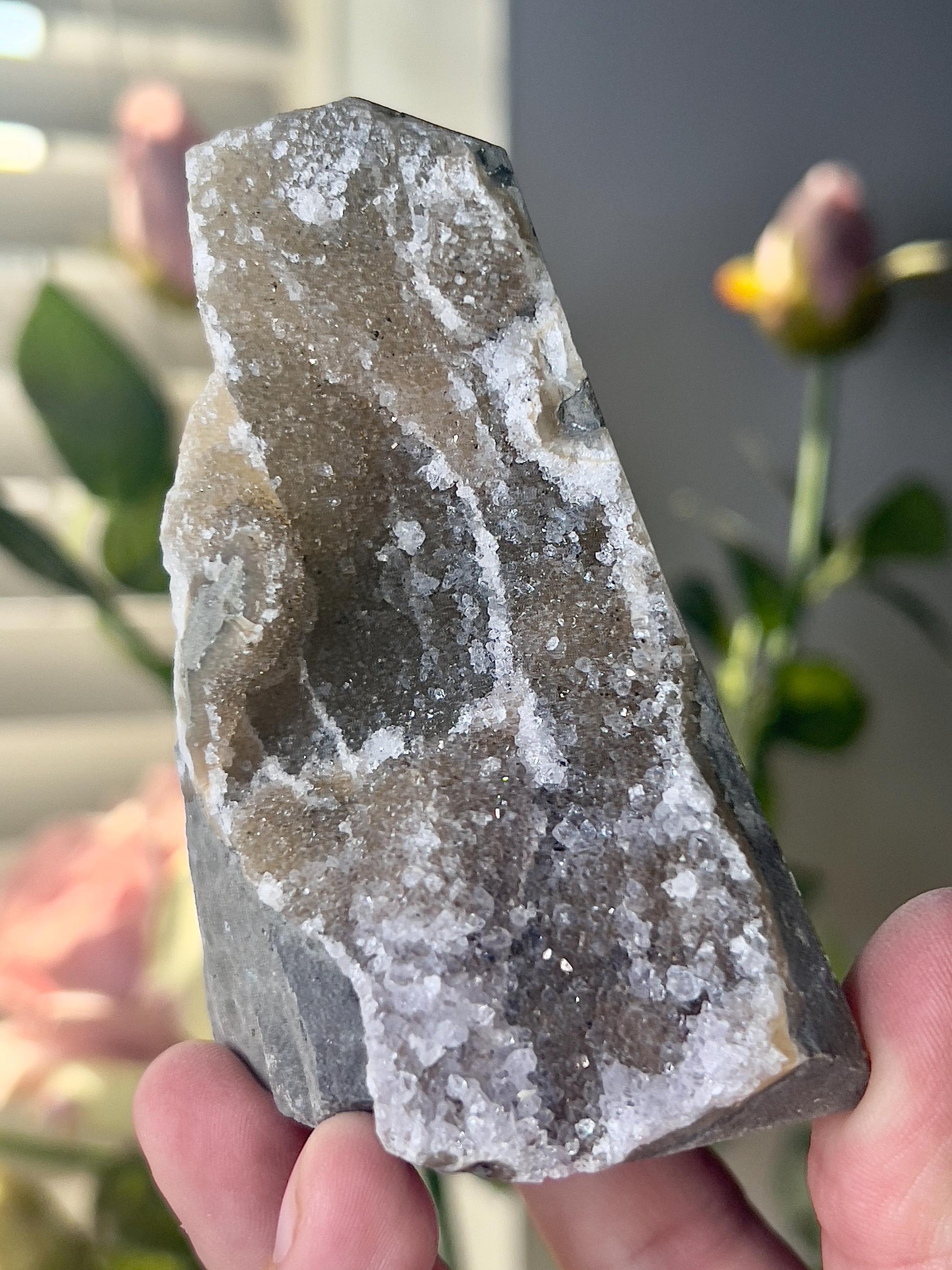 amethyst cutbase green toned freeform - 205g 9cm (H) 6.5cm (W)