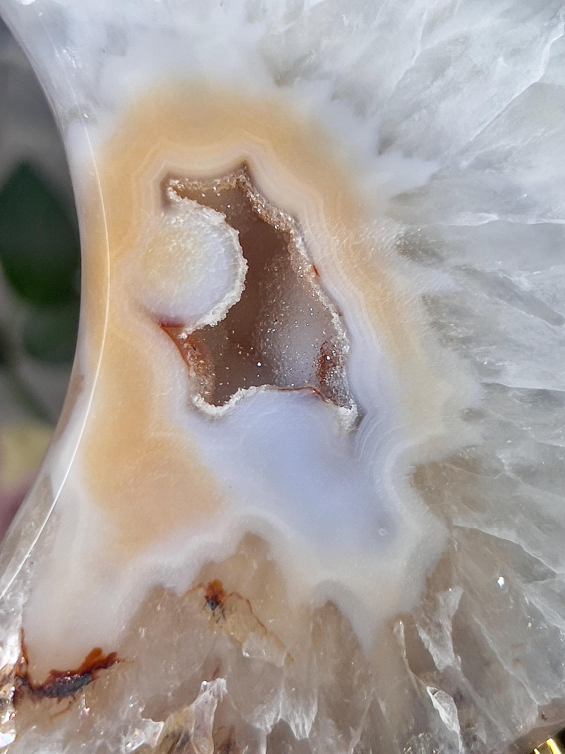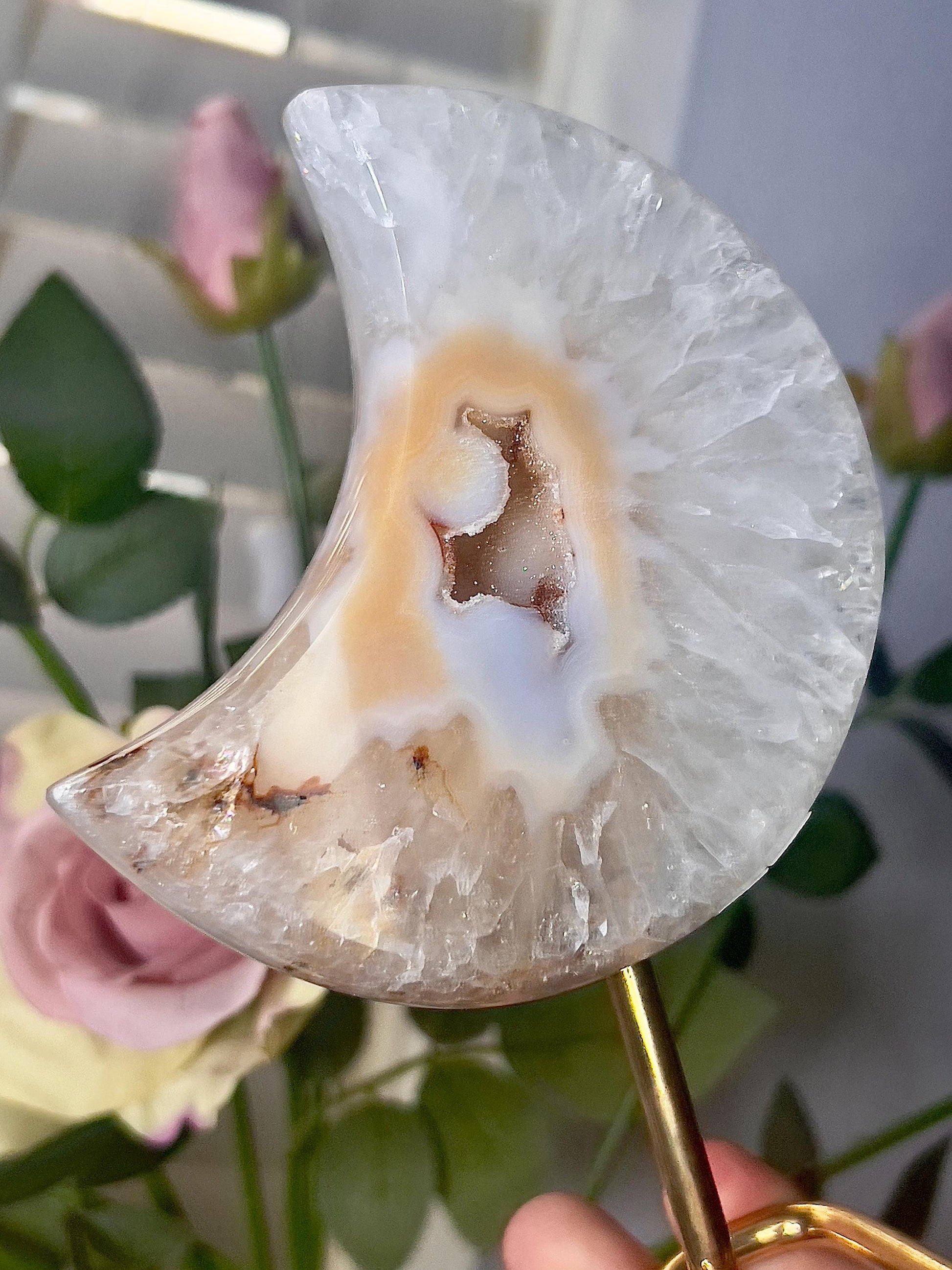 Beautiful, agate moon on stand 465g 17cm(h) 12cm(w)