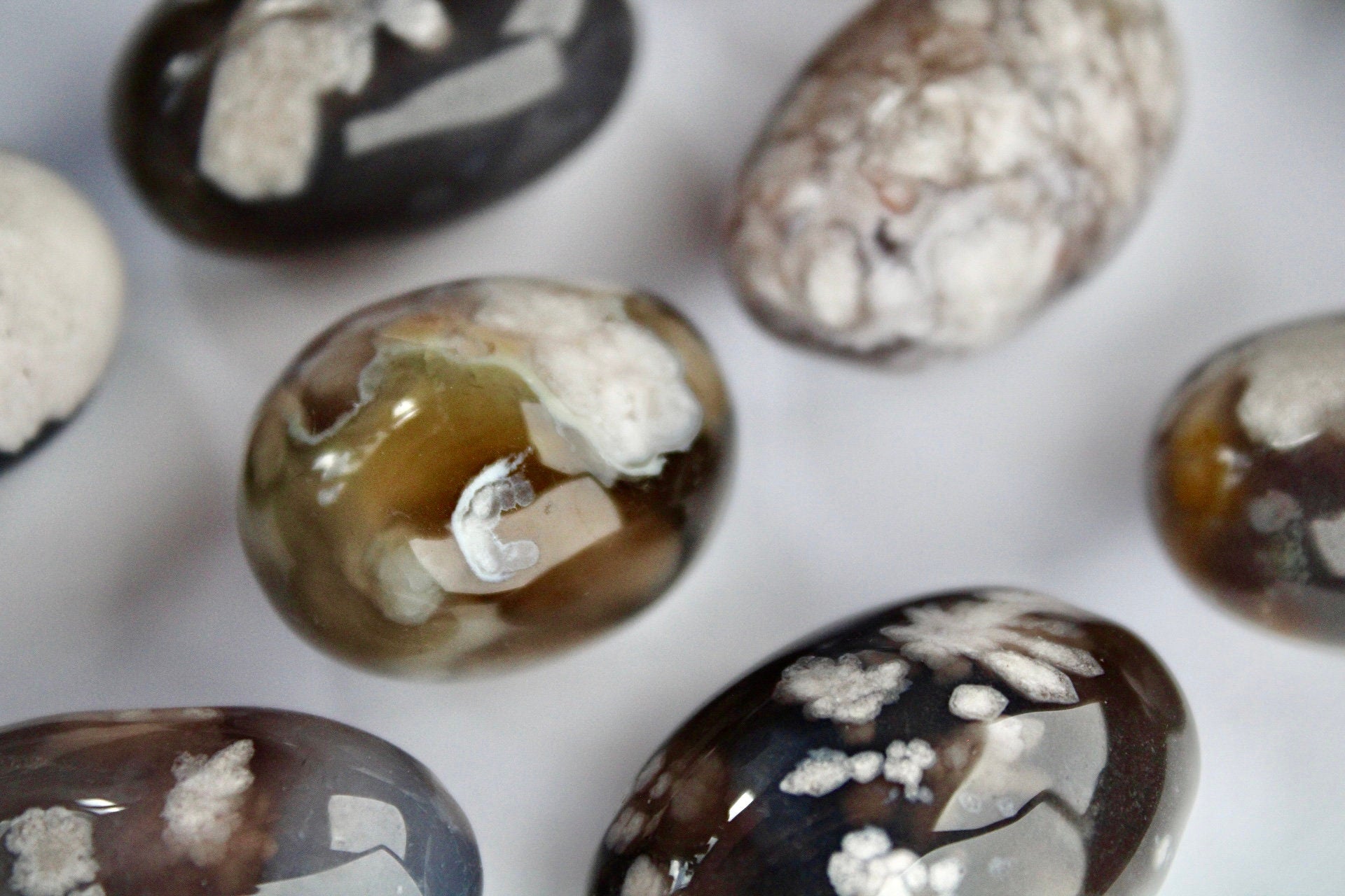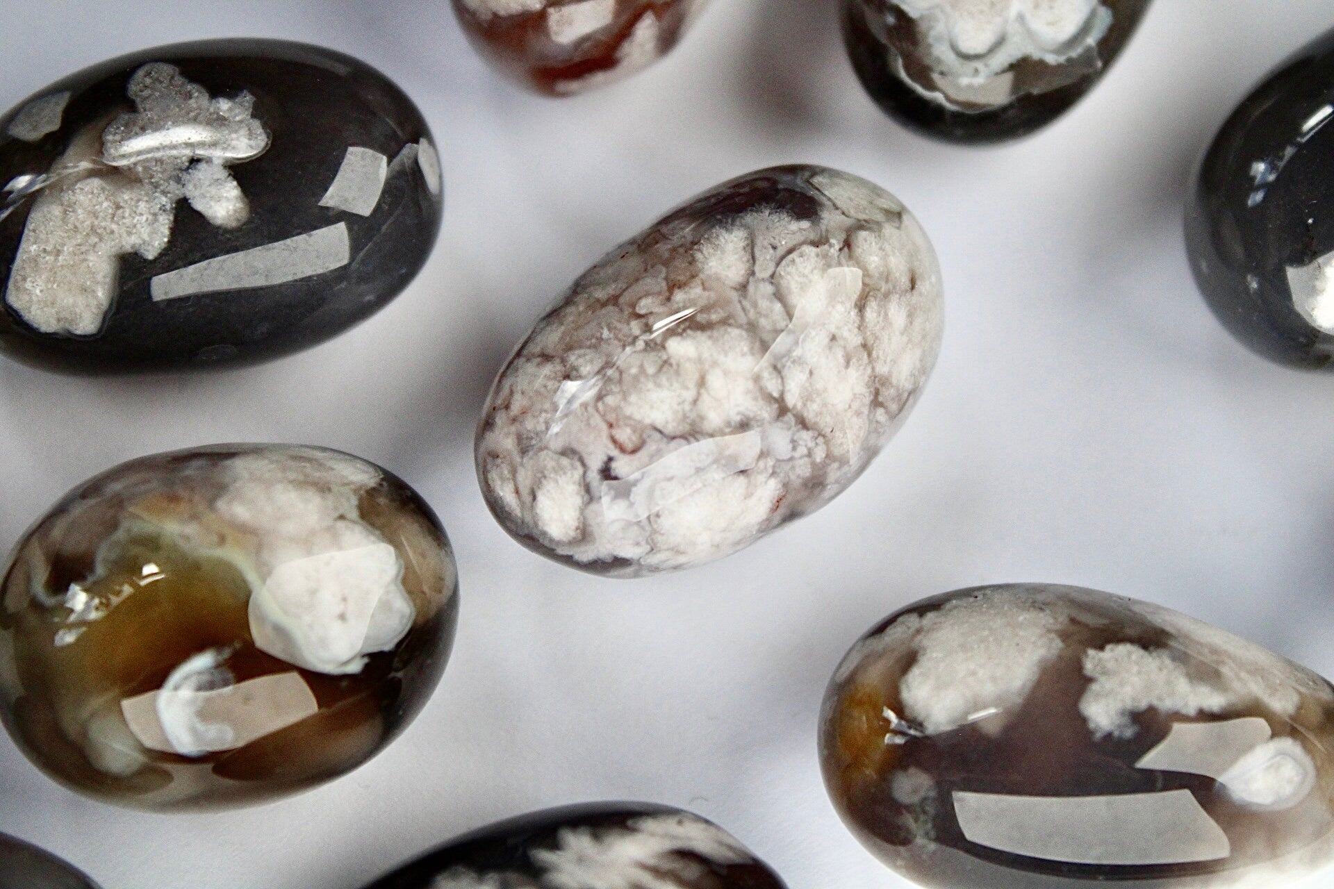 Gorgeous high quality black flower agate tumbles
