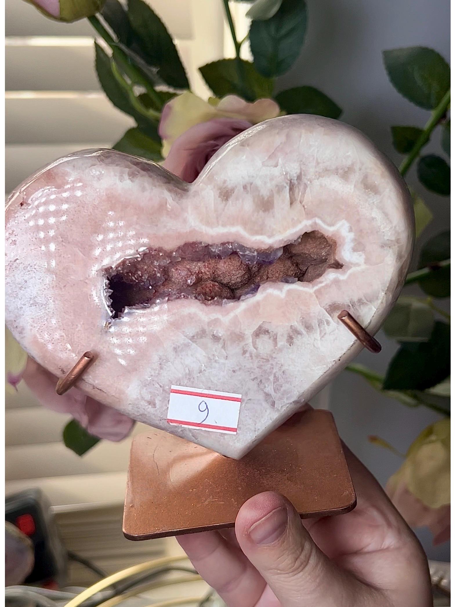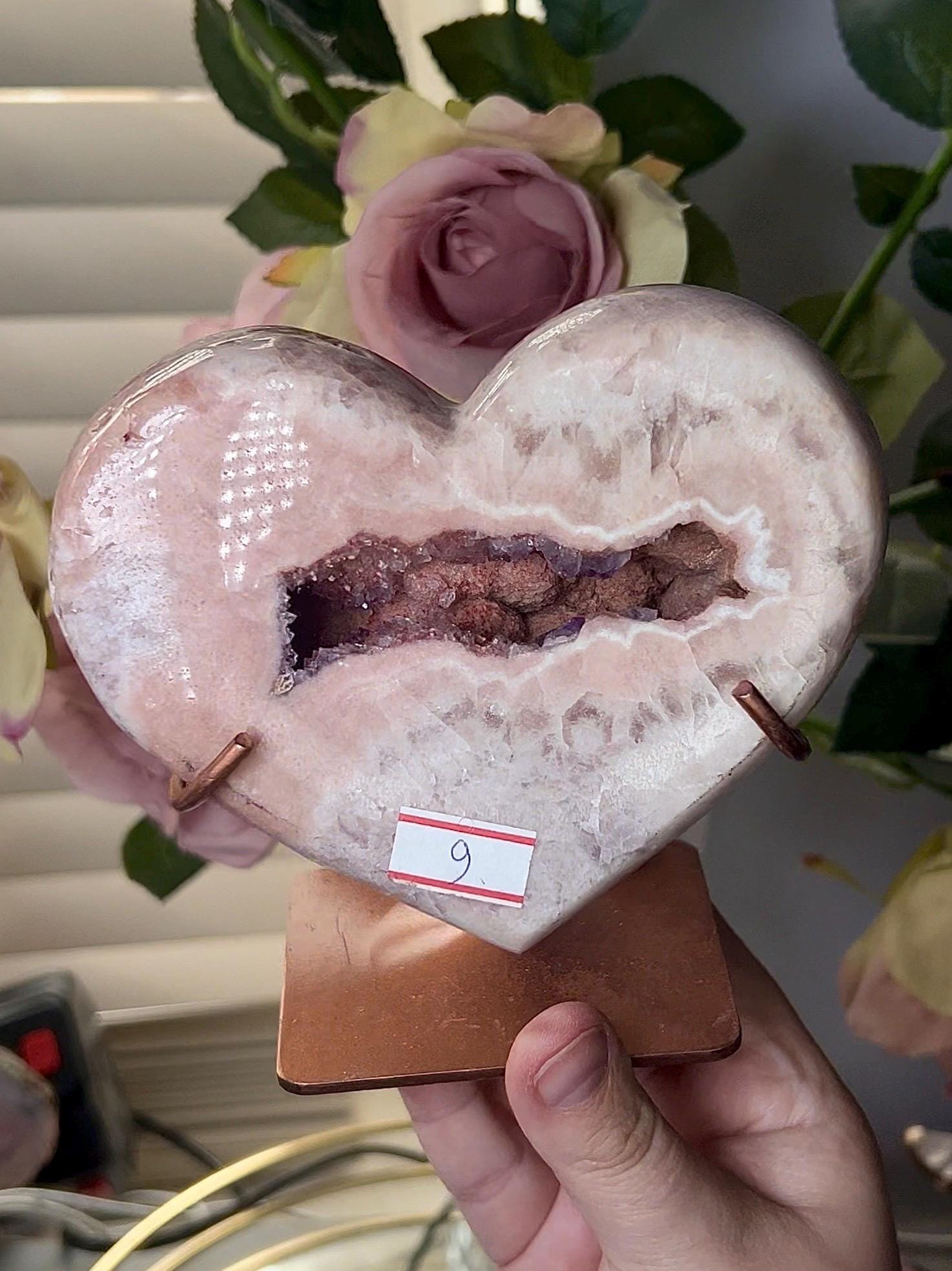 Extra high quality, large Chonky, pink amethyst heart, with purple/ red quartz druzy mouth 850g