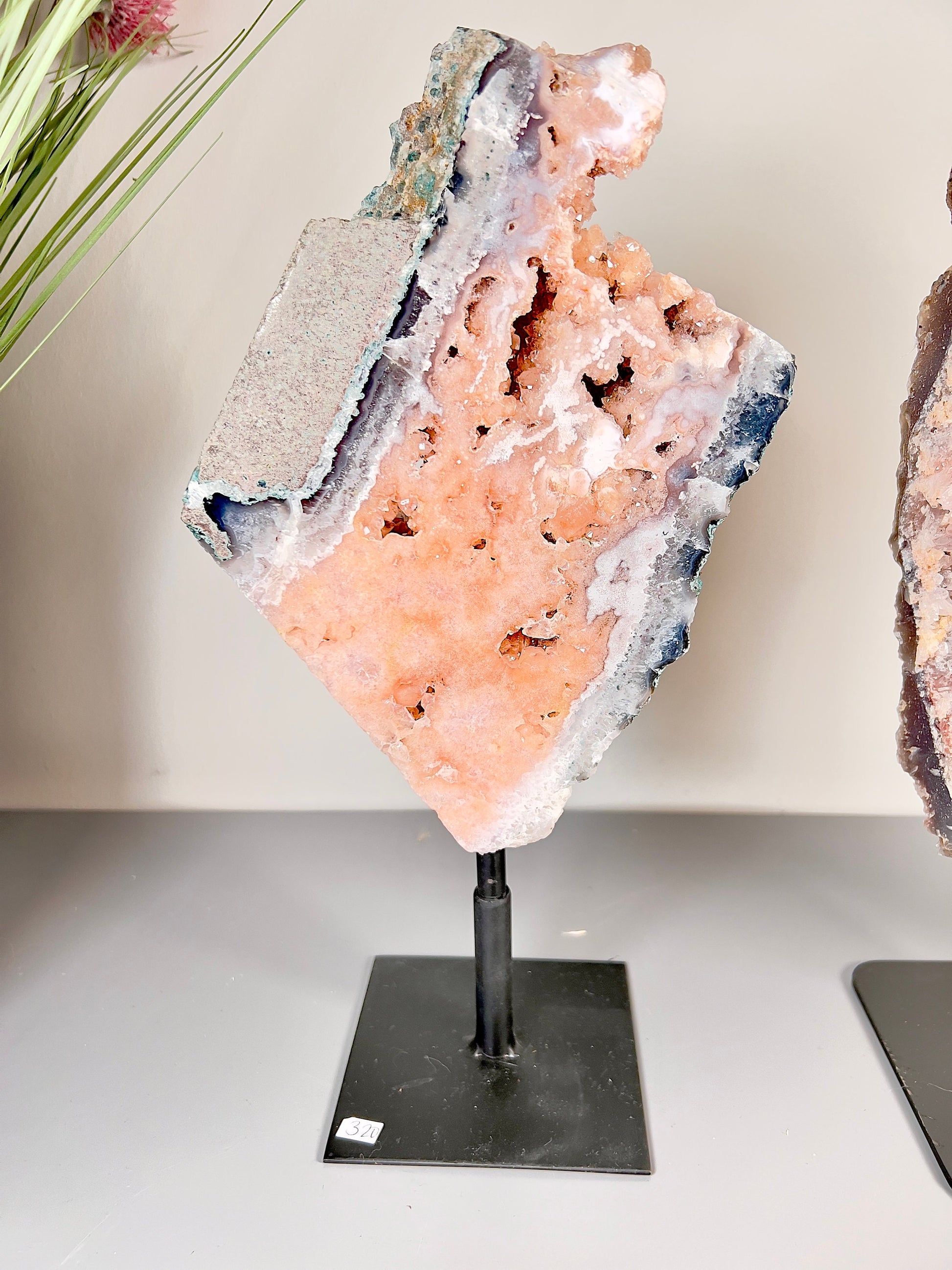 This gorgeous peach coloured pink amethyst slab is like a work of art!