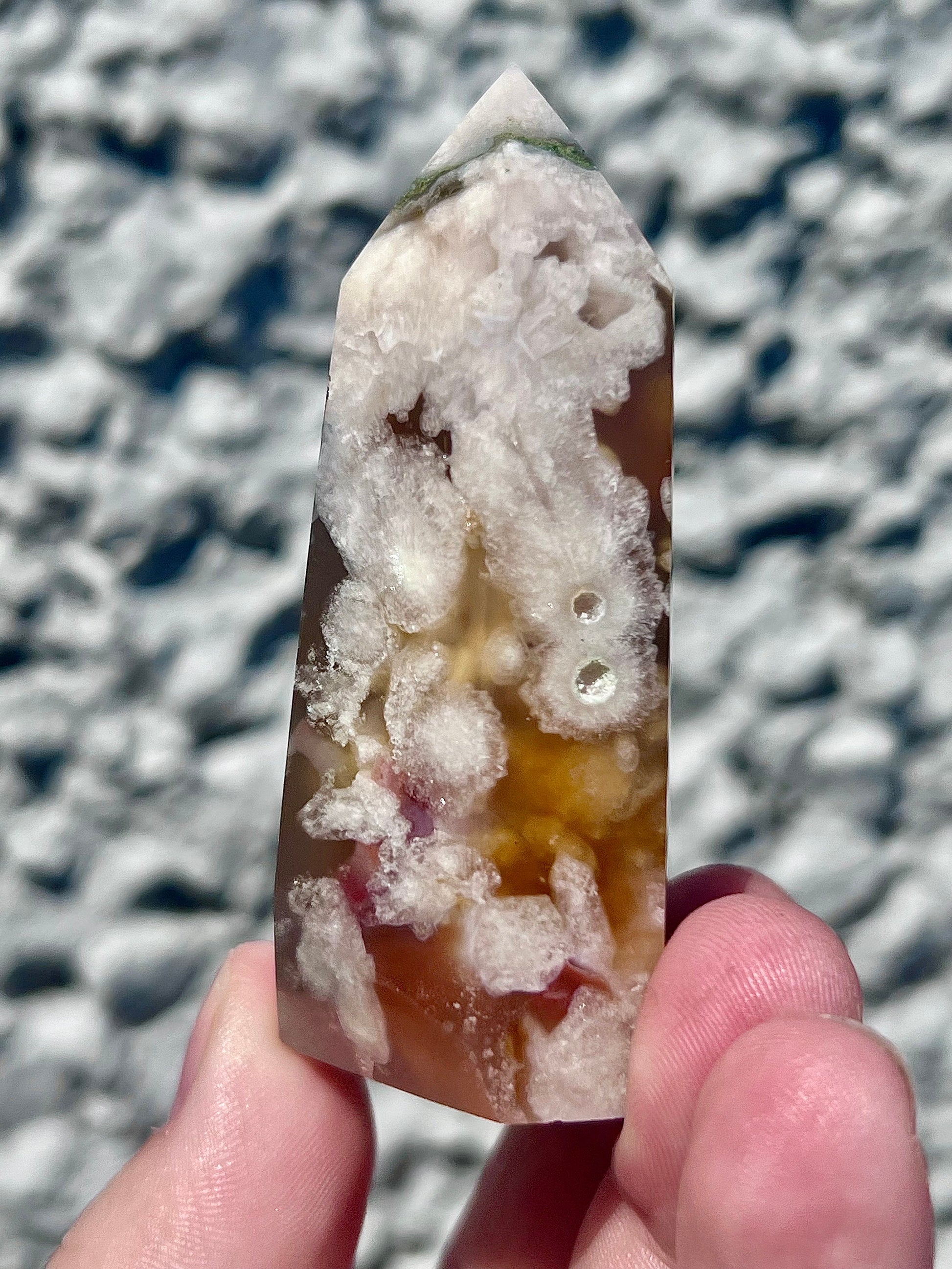History: As a relatively recent addition to the crystal world, flower agate has quickly gained popularity for its aesthetic appeal and metaphysical properties. It is primarily sourced from Madagascar and has become a favorite among collectors and healers alike.