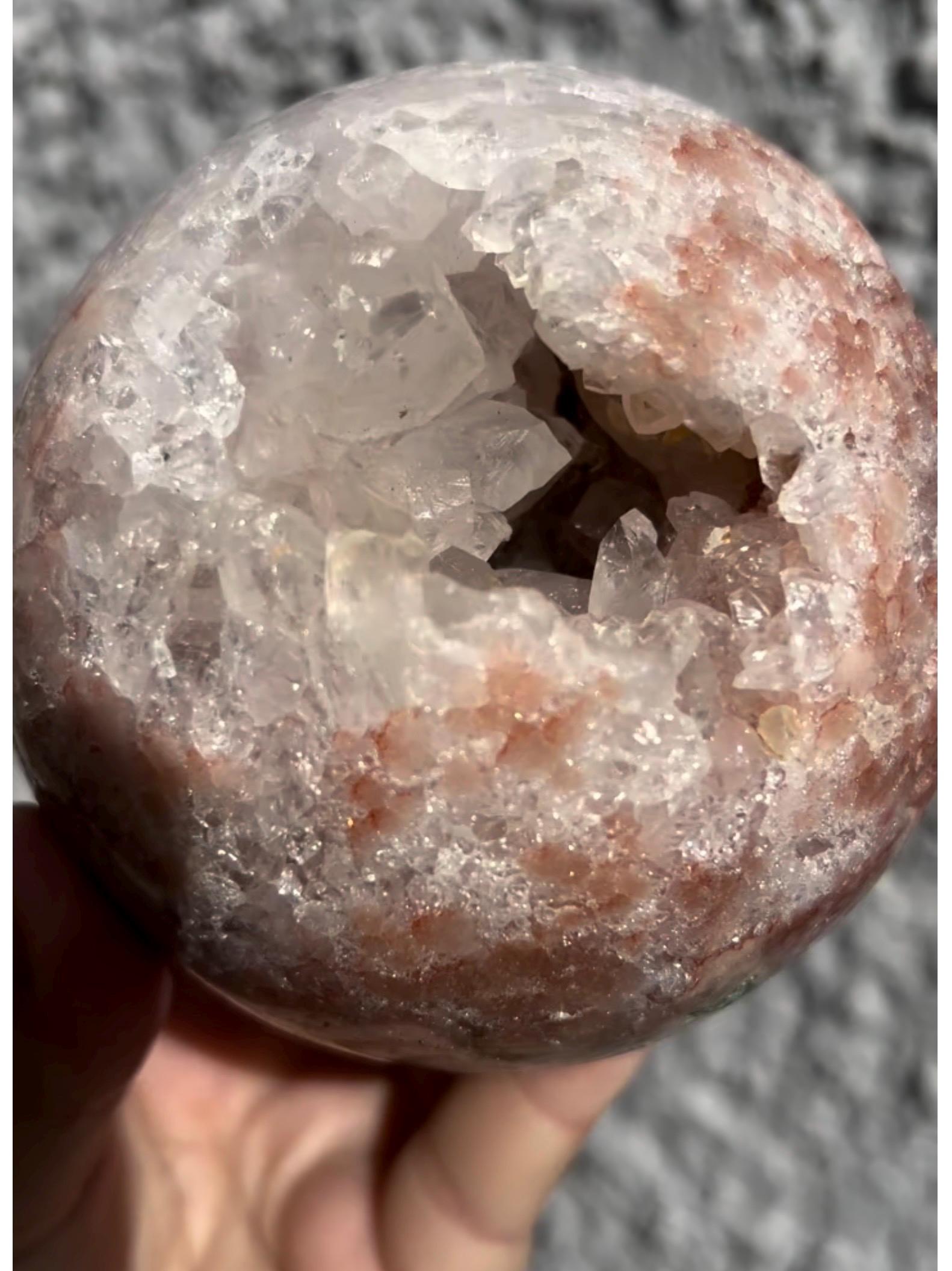 high grade, large, statement, pink amethyst sphere, with incredible quartz & red sugar druzy 1.230kg
