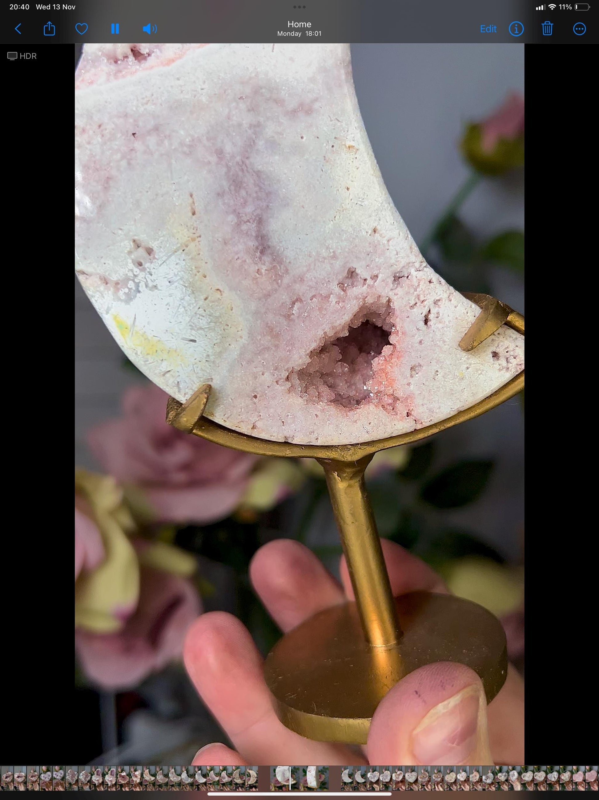 High grade, pink amethyst moon in beautiful pastel tones, with sugar and mini bubble druzy