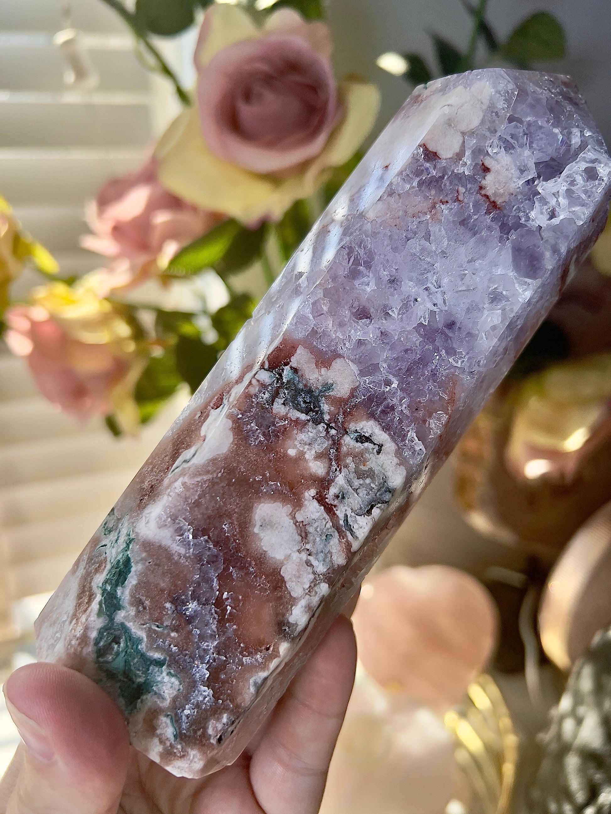 She gets her pink colour from inclusions of hematite (iron) within the stones structure. But despite her softer appearance, she is no less powerful than regular amethyst.