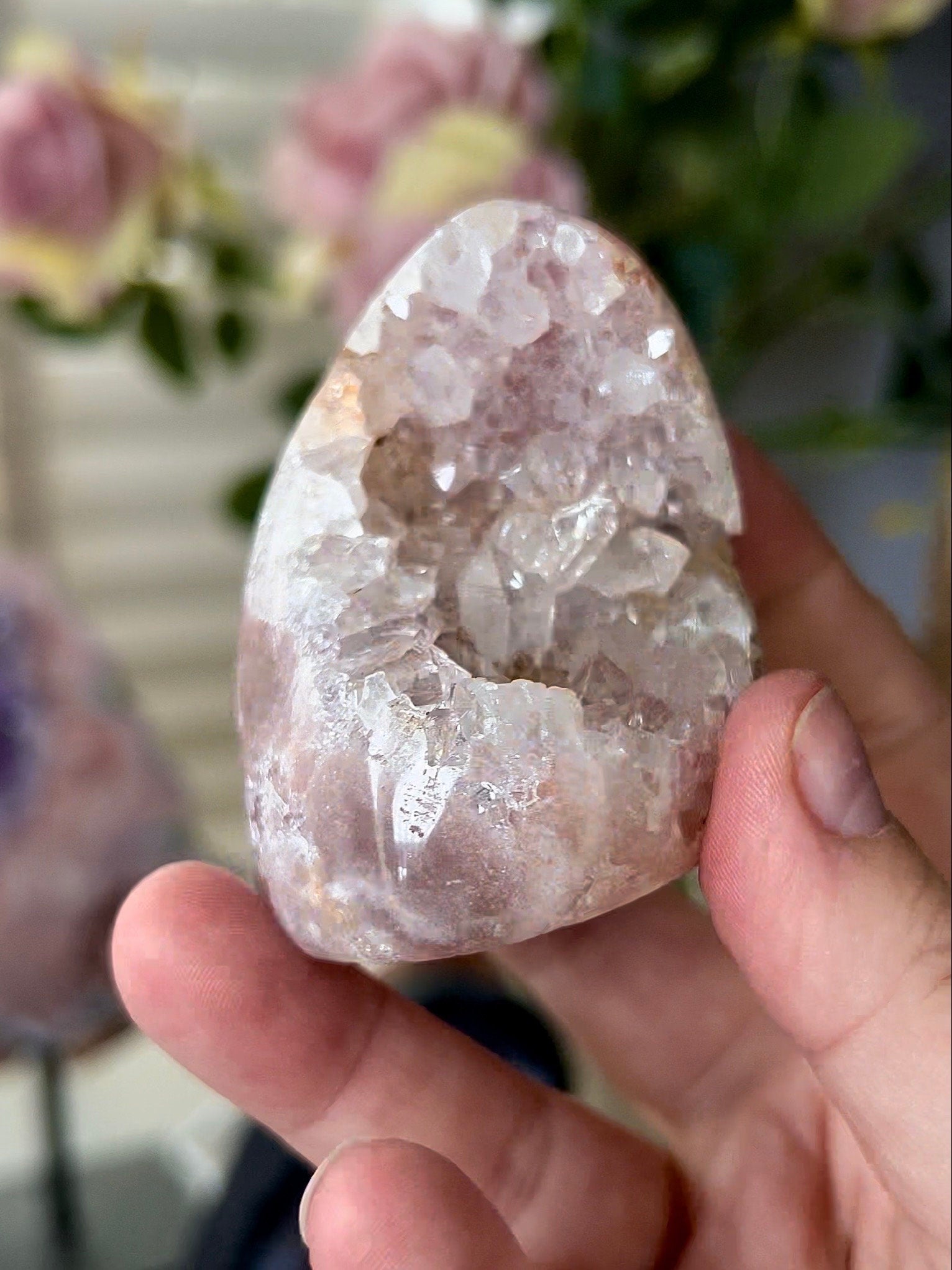 She gets her pink colour from inclusions of hematite (iron) within the stones structure. But despite her softer appearance, she is no less powerful than regular amethyst.