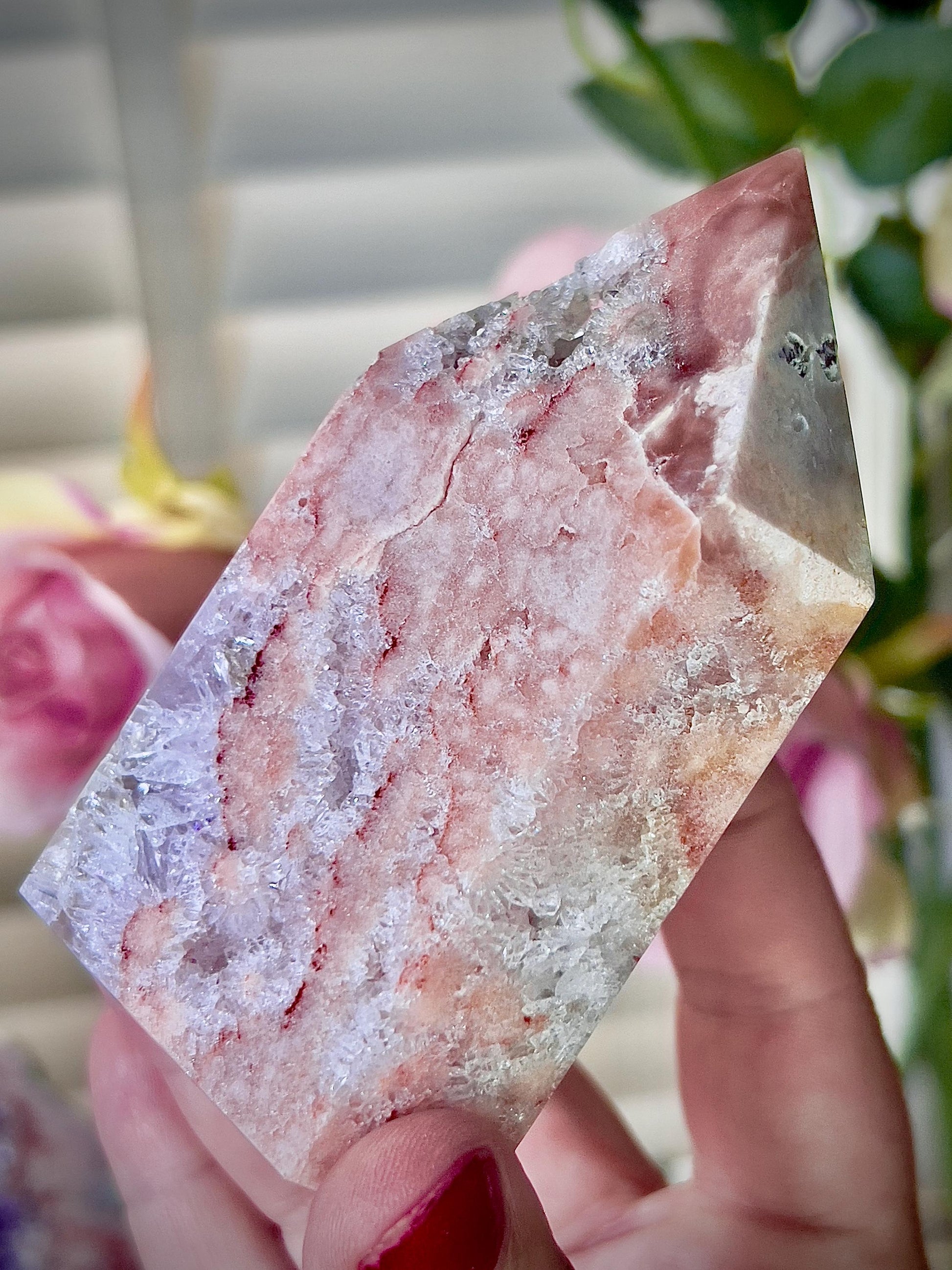 She gets her pink colour from inclusions of hematite (iron) within the stones structure. But despite her softer appearance, she is no less powerful than regular amethyst.