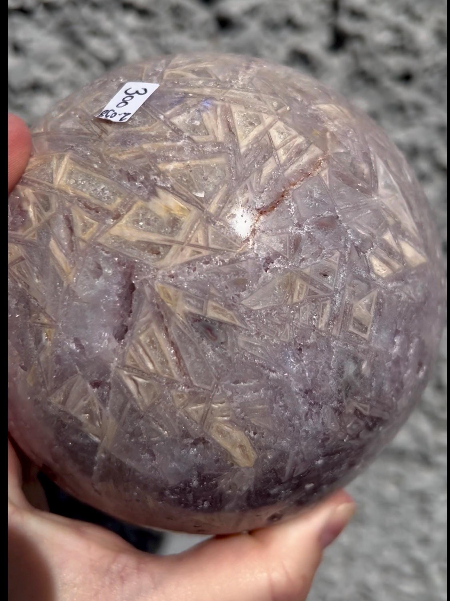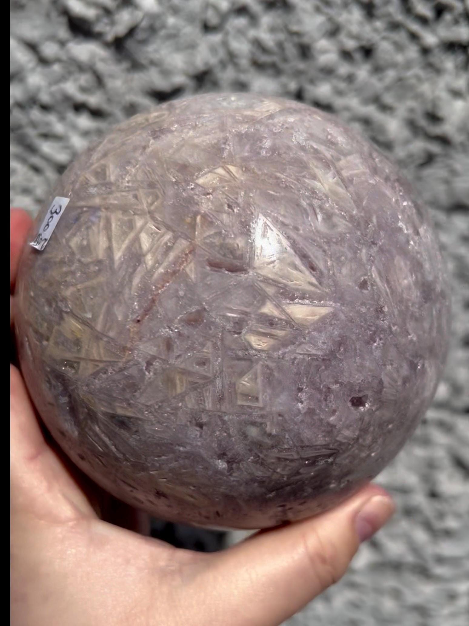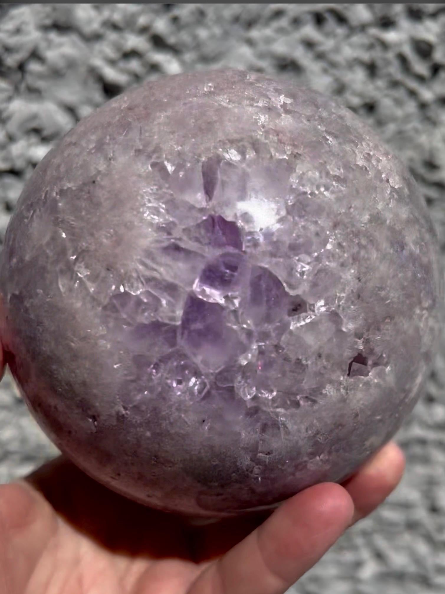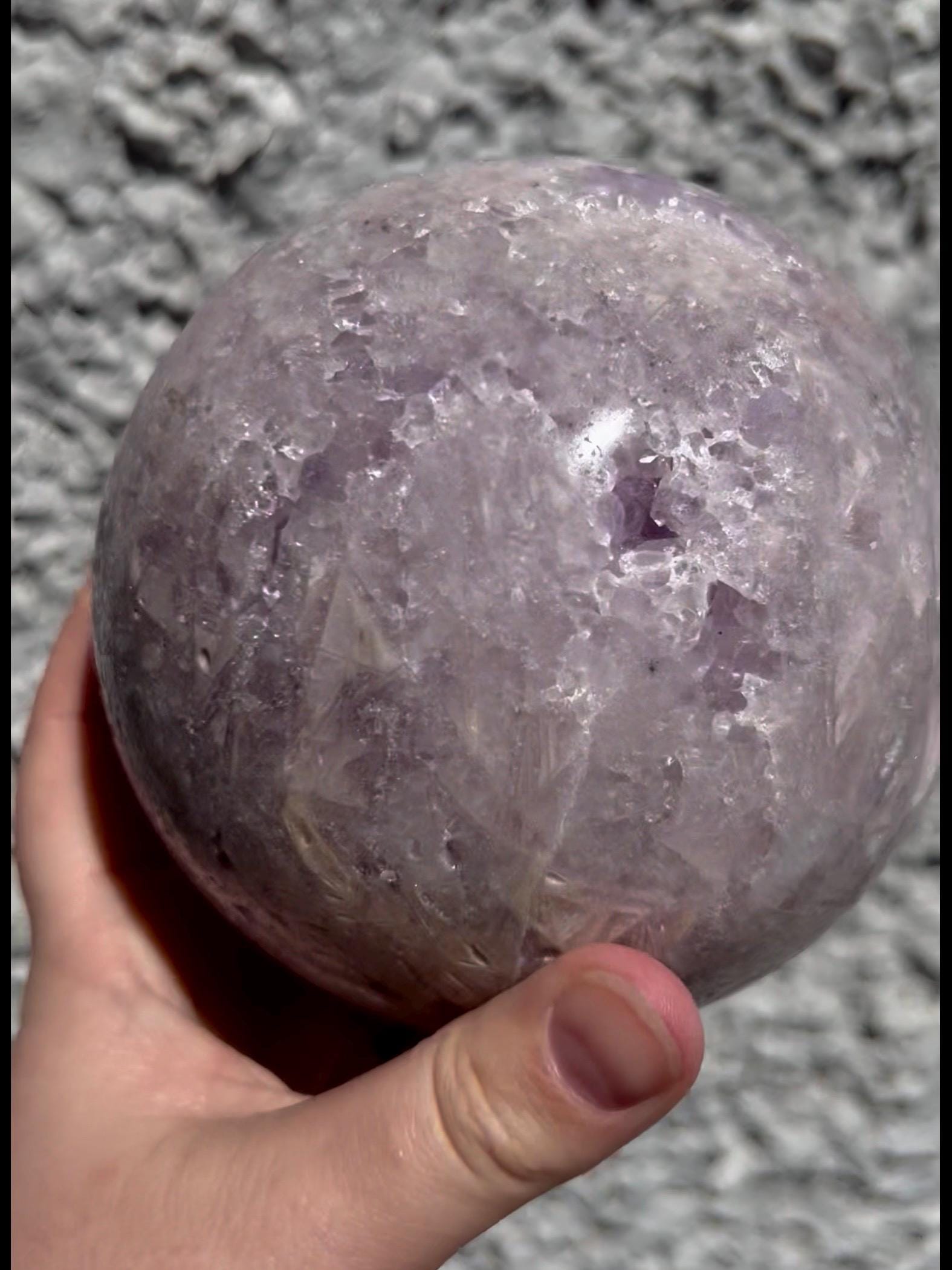 large, statement pink amethyst sphere with rutile formations in gorgeous lilac tones 2.058kg