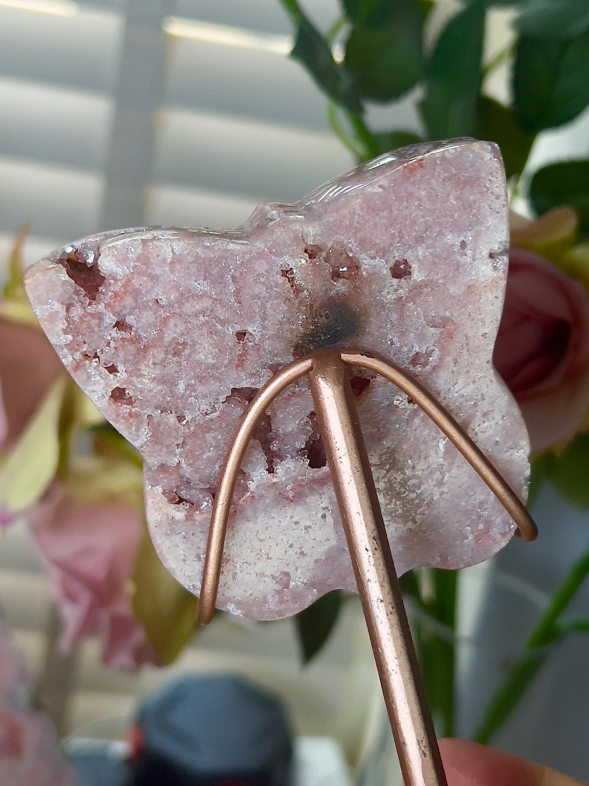 Pink amethyst butterfly on stand