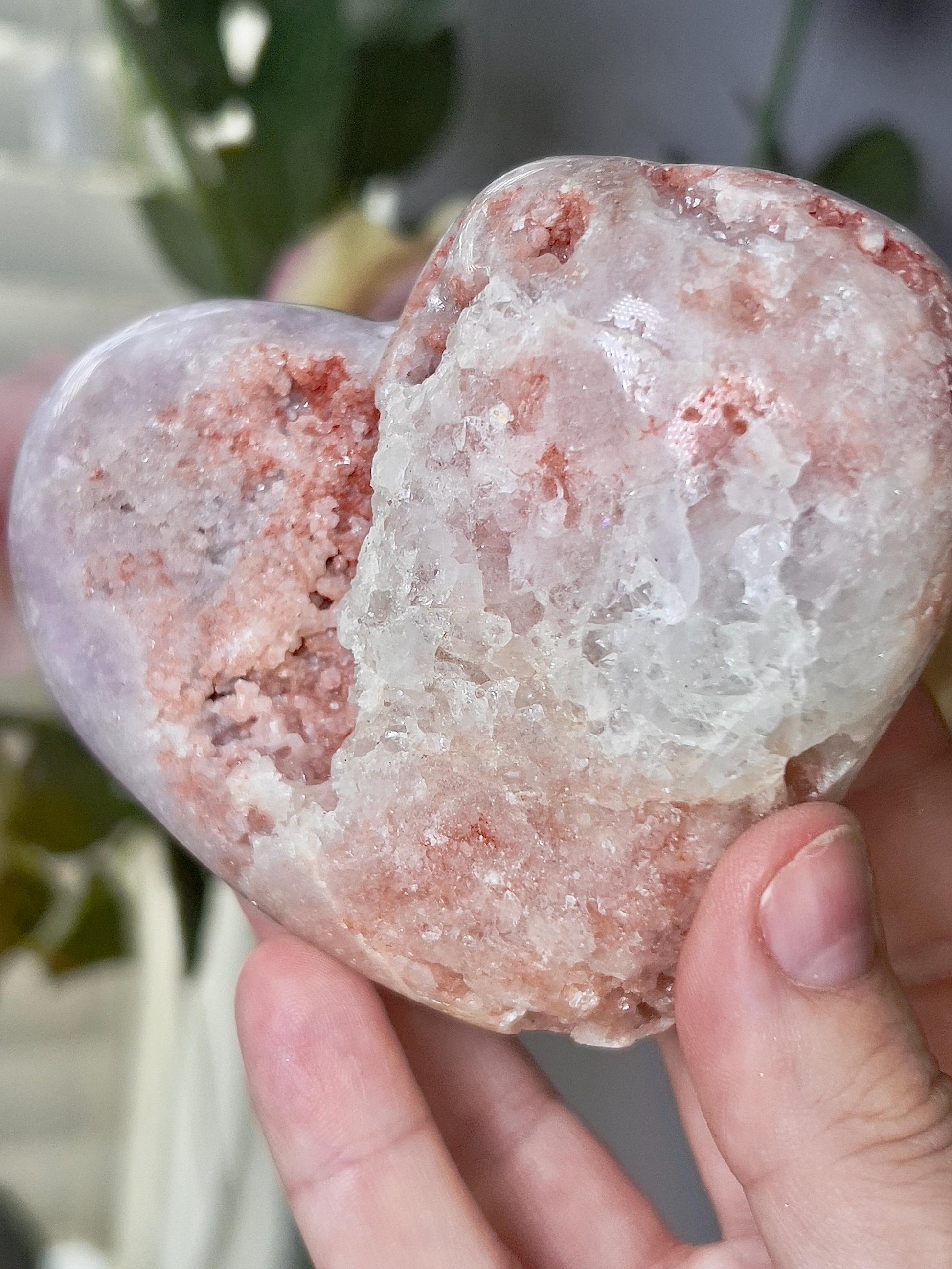 Pink amethyst heart in pink & peach tones with quartz and sugar druzy