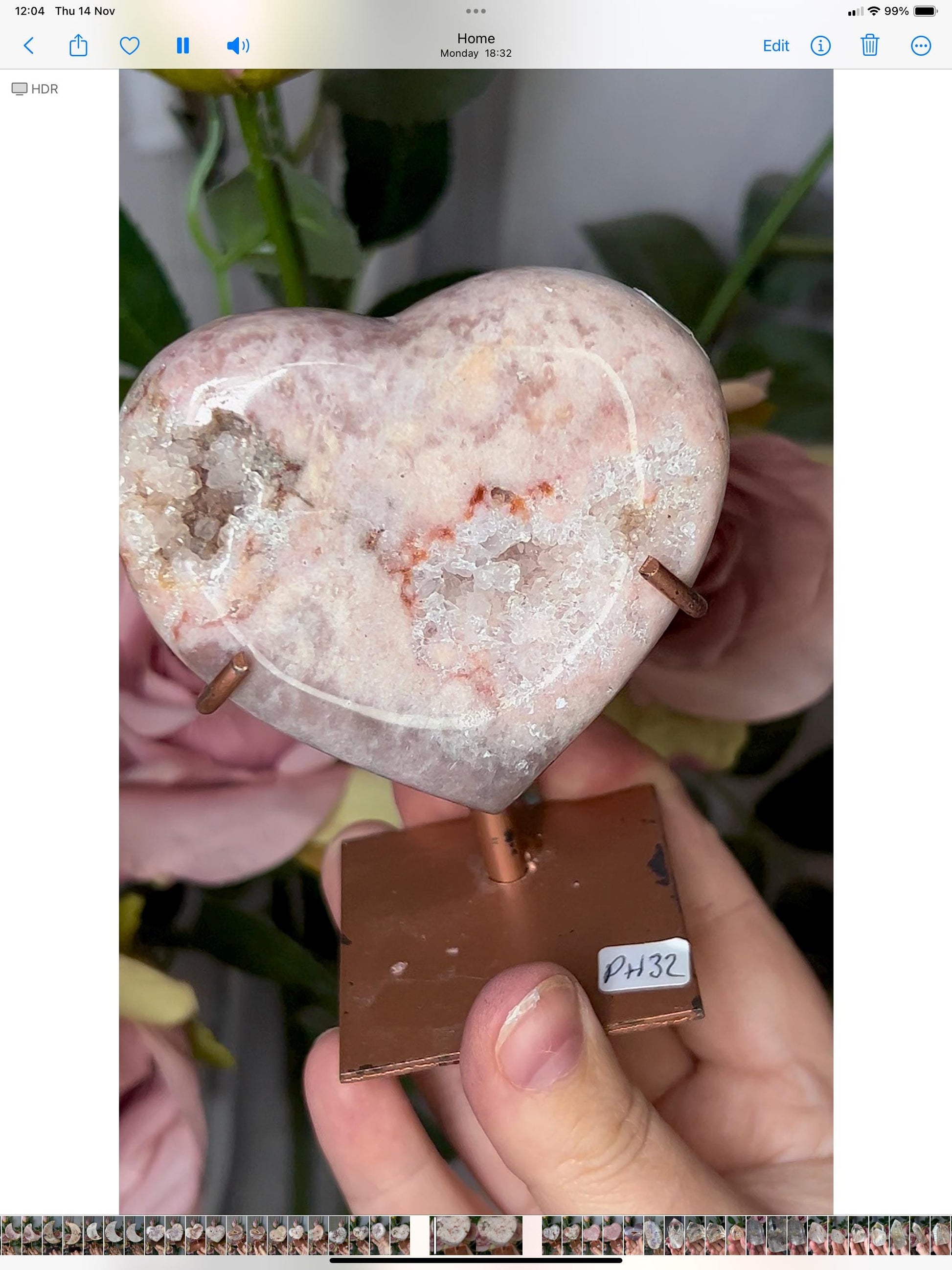pink amethyst heart with quartz druzy comes with stand that is scratched (discount added)