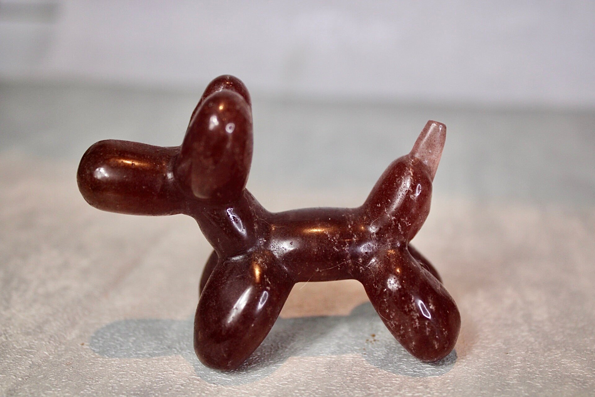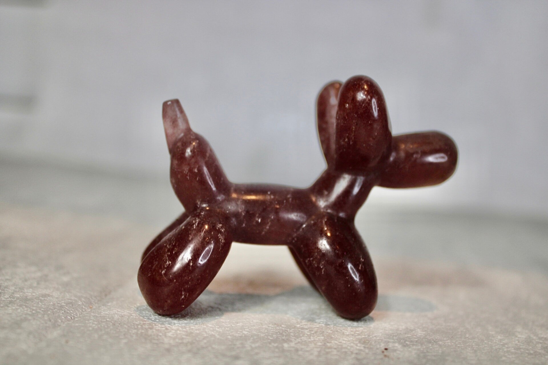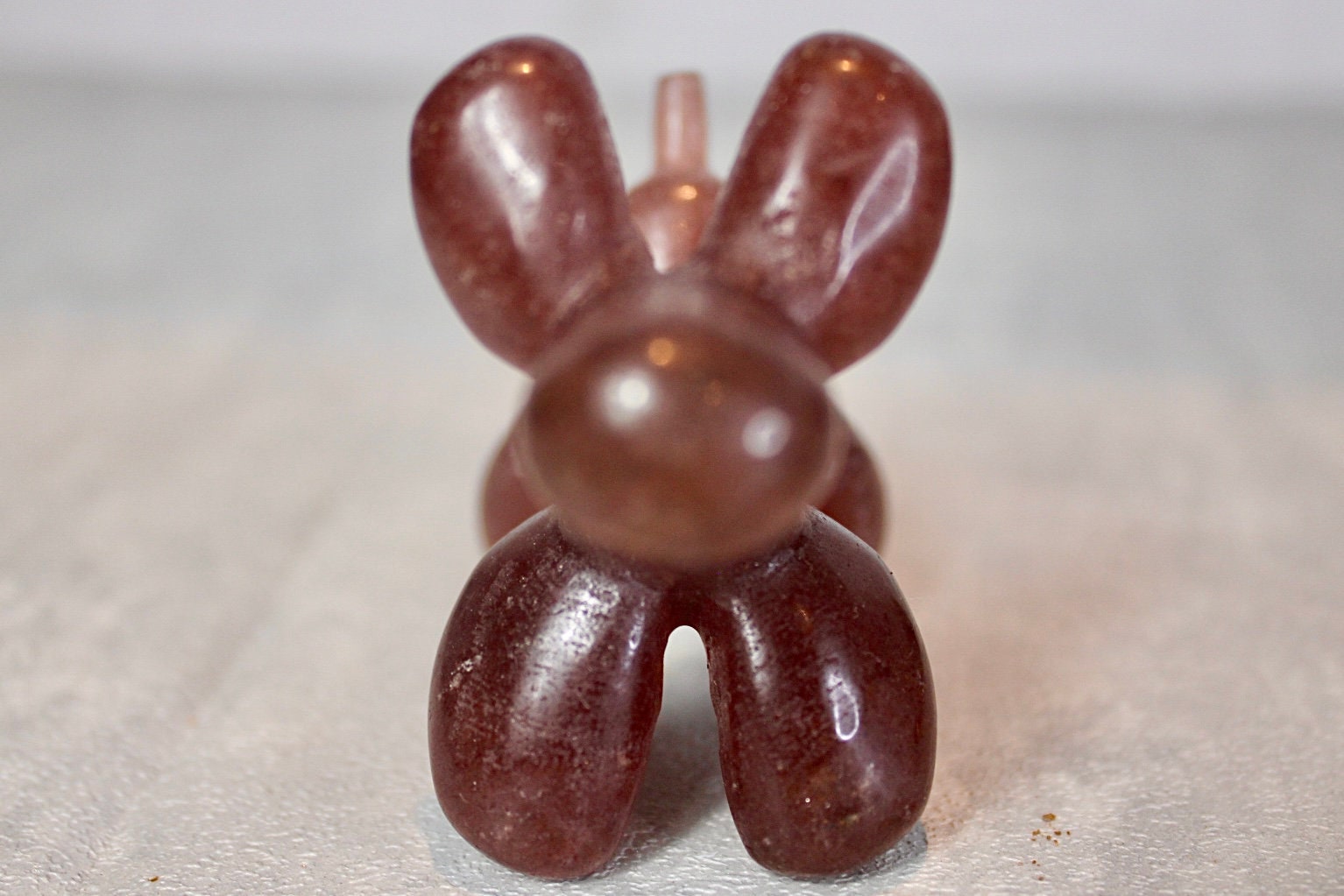 Strawberry quartz, balloon dog, carving 5.5(H) 7.5(L)